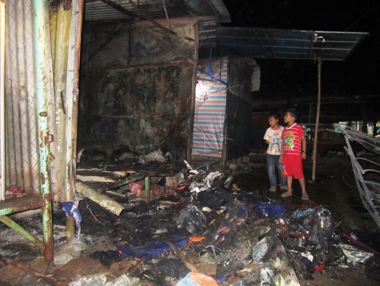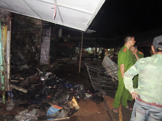 | 3 ki ốt bị thiêu rụi sau đám cháy. |