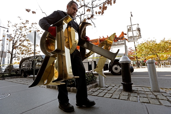 Một người dân gỡ bỏ chữ Trump. (Ảnh: The Guardian) |