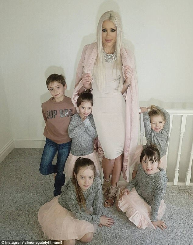 Cô Simone Gately, 35 tuổi, sống ở Halifax, phía tây Yorkshire, Anh quốc, đã là mẹ của 5 đứa trẻ là Summer 10 tuổi, Chester 8 tuổi, Blossom 7 tuổi, India 6 tuổi và Minmie 3 tuổi.