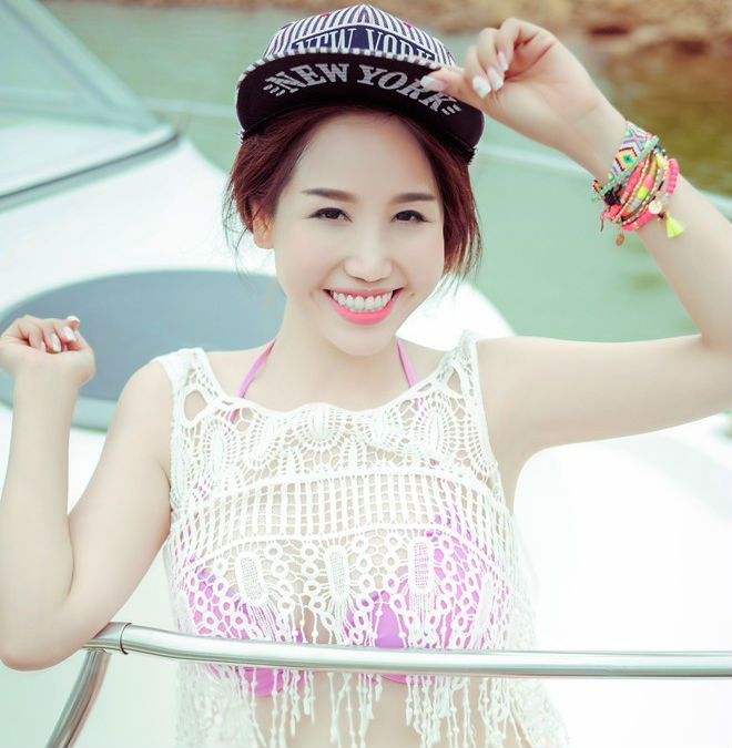 Dưới cái nắng hè oi bức của mùa hè, bà mẹ trẻ tự tin khoe sắc với trang phục bikini. |