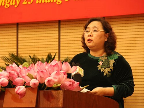 Bà Nguyễn Thị Bích Ngọc - tân Chủ tịch HĐND TP Hà Nội phát biểu nhận nhiệm vụ. (Ảnh: Báo An ninh Thủ đô). |
