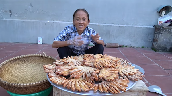 Cụ thể, có một lần bà Tân từng khiến dân mạng "hết hồn" với món bánh tiêu phiên bản "kinh dị". Theo đó, chiếc bánh của bà không chỉ có hình thù kỳ lạ mà trong khâu chế biến, bà còn liên tiếp mắc lỗi về vấn đề vệ sinh.