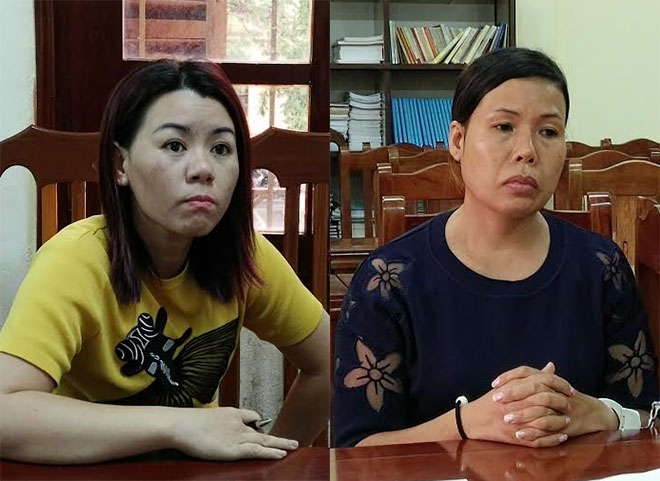 Hai đối tượng Đỗ Thị Lệ áo vàng) và Lý Thanh Nga (áo đen). |