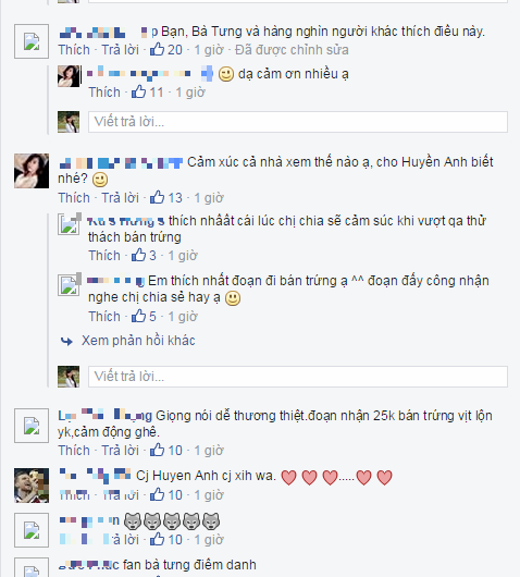 Be Shin trêu đùa: “Trước ghét Tưng lắm. Bây giờ bị yêu luôn rồi”. Còn Kim Kon Ku bình luận: “Chị Anh ơi chị thay đổi như thế em rất vui, luôn luôn ủng hộ chị. Cố gắng lên chị nhé, không có ai là xấu chỉ do mọi người chưa hiểu mình thôi”.