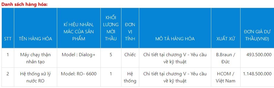 Trong đó, hạng mục Hệ thống xử lý nước RO, Model: 6600, được TTYT huyện Sơn Động phê duyệt với giá trúng thầu là 1,15 tỷ đồng. Cùng loại thiết bị trên, TTYT huyện Lương Tài, Bắc Ninh chỉ mua với giá 490 triệu đồng.