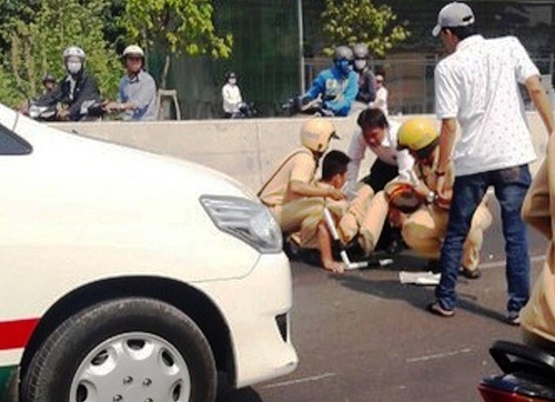 Khi được yêu cầu dừng xe để kiểm tra, nam thanh niên không chấp hành mà còn tông thẳng xe vào thiếu úy CSGt đang làm nhiệm vụ.
