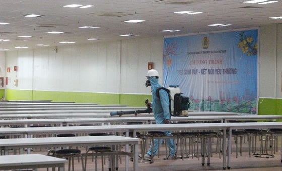 Phun thuốc khử trùng tại Công ty TNHH Shin young Việt Nam. Ảnh: GĐ&XH |