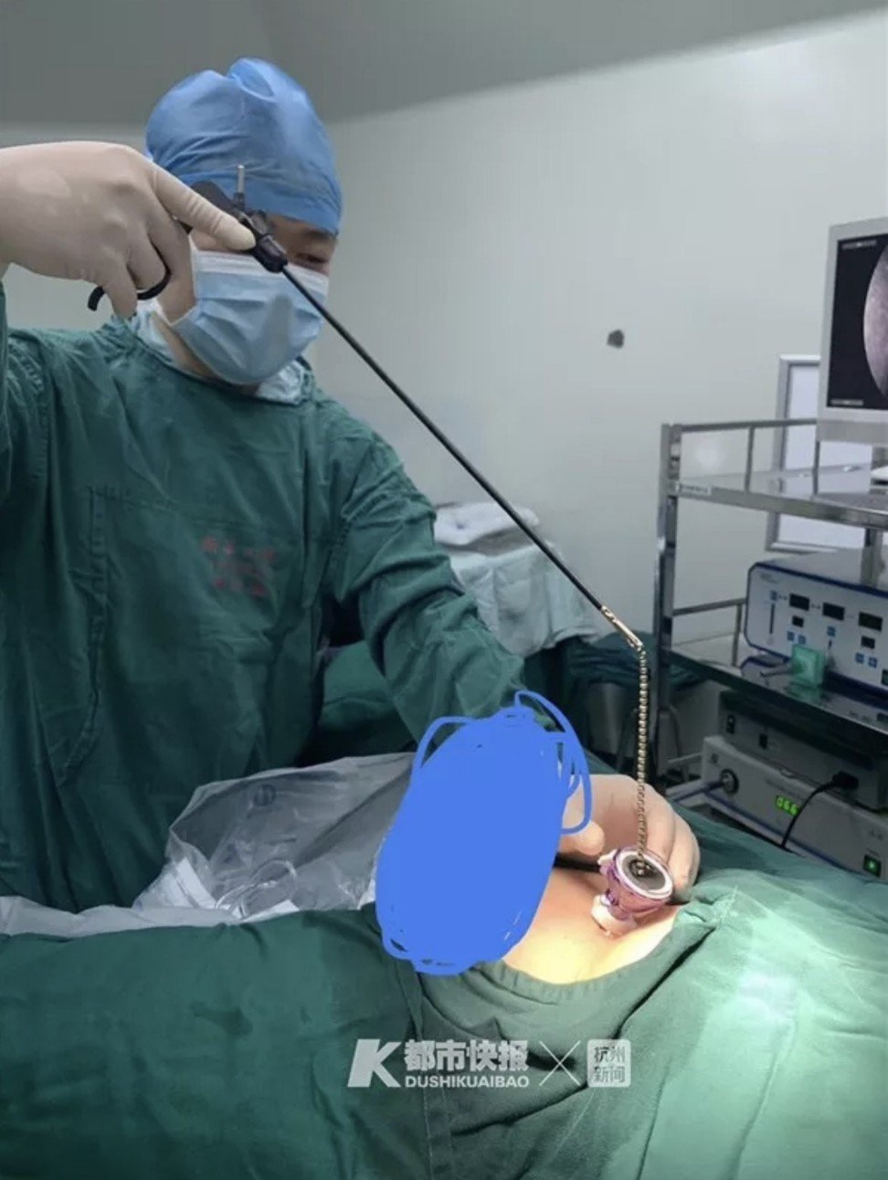 Các bác sĩ thực hiện ca phẫu thuật nội soi cho cậu bé dại dột - Ảnh: Guancha. |