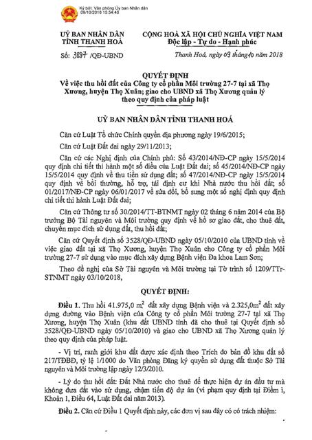 | Quyết định thu hồi đất của UBND tỉnh Thanh Hóa |