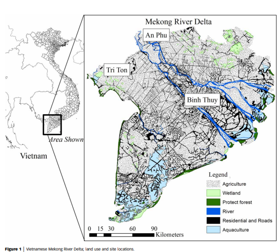 Nhóm nghiên cứu đã đánh giá sự ảnh hưởng của mùa lũ và nước biển dâng đến khu vực này và lựa chọn huyện An Phú, Tri Tôn (Tỉnh An Giang) và quận Bình Thủy (thành phố Cần Thơ) làm đối tượng nghiên cứu chính.