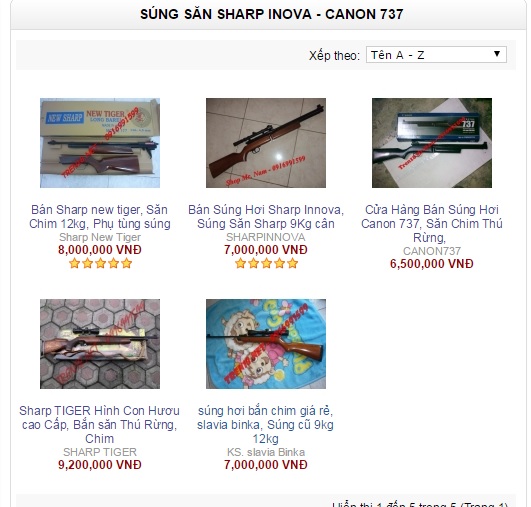 PV hỏi, “giá của khẩu súng này là bao nhiêu?”. H. cho biết, “hàng này có giá 3,5 triệu đồng/khẩu anh ơi”. Hay như một người tên K. có số điện thoại 0916828xxx cho biết: “Súng bắn điện Taser có vỏ bằng nhựa APS, thiết kế mô phỏng hình gần giống súng bắn đạn thật (kèm theo ba viên đạn). Súng bắn điện Taser có thể phóng điện xa hơn 6m, điện áp 7.500 V. Khi bắn sẽ gây ngất và tê liệt toàn thân. Khi bắn hết đạn, súng Taser vẫn còn là một kìm điện dạng gần. Sản phẩm này có giá 3,5 triệu đồng, hiện đang khuyến mãi giảm còn 2,9 triệu đồng”.