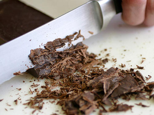 Từ thỏi socola thô bạn đã chuẩn bị trước đó, bạn hãy dùng dao băm nhỏ vụn thỏi socola này ra, bạn hoàn toàn có thể dùng những phương pháp khác, miễn sao bạn thu được socola được bào nhỏ nhé!