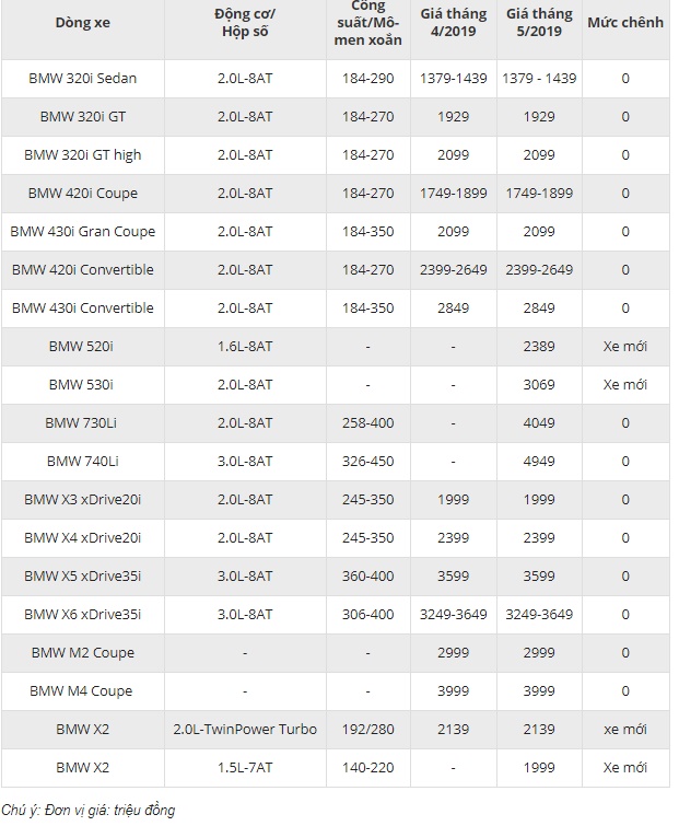 Bảng giá BMW tháng 5/2019 mới nhất. Ảnh: oto |