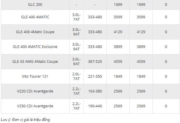 Dưới đây là bảng giá Mercedes-Benz cập nhật mới nhất: