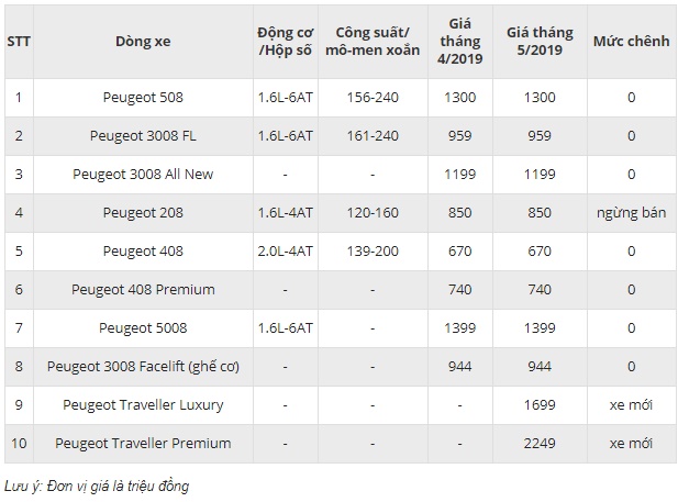 Bảng giá Peugeot tháng 5/2019 mới nhất. Ảnh: oto |