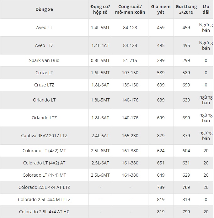 Trong tháng 3/2019, Chevrolet Việt Nam t hực hiện chương trình khuyến mãi đối với hai mẫu xe Colorado và SUV 7 chỗ Trailblazer, với mức giảm giá bán cao nhất lên tới 50 triệu đồng.