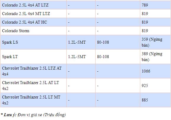 Với mức giá bán tầm 900 triệu, giá lăn bánh của Trailblazer cao nhất hiện nay chỉ rơi vào khoảng hơn 1 tỷ đồng. Bán tải Colorado với mức giảm giá tới hơn 150 triệu.