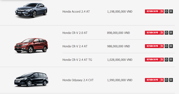Giá bán các mẫu xe Honda tại VIệt Nam trong tháng 10/2017: