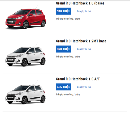 Sang tháng 5, Hyundai vẫn tiếp tục áp dụng tăng giá cho 3/9 dòng sản phẩm Hyundai Grand i10 của thương hiệu này.