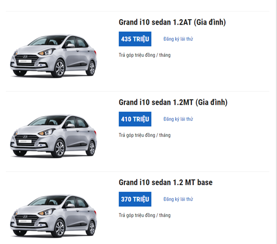 Cụ thể, Hyundai áp dụng tăng giá cho ba dòng xe gồm Hyundai Grand i10 sedan base, Grand i10 sedan gia đình 1.2 AT và Grand i10 2017 1.2 AT với mức tăng đồng loạt là 10 triệu đồng.