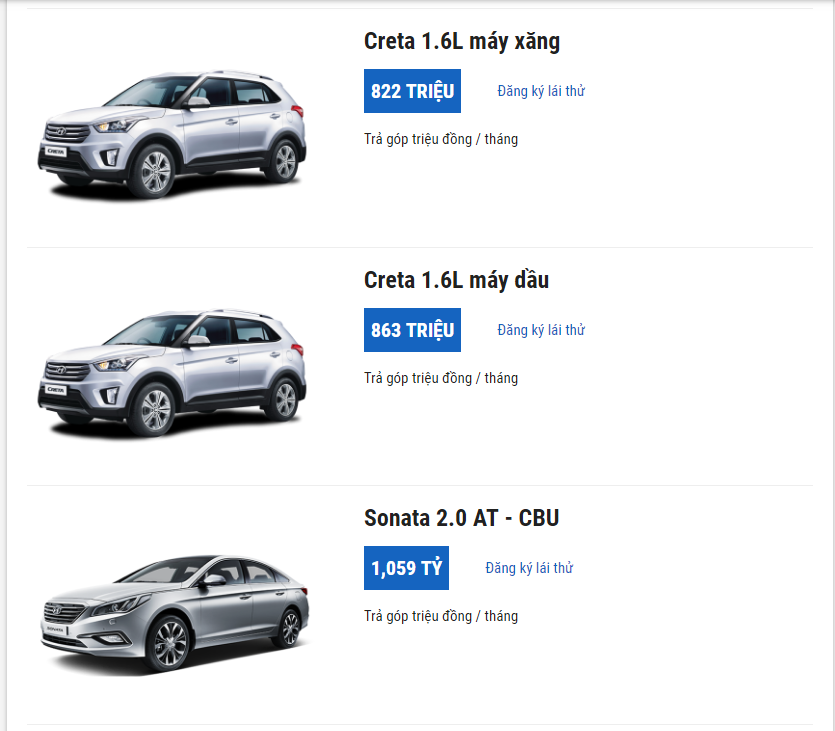 Bảng giá xe ô tô Hyundai mới nhất tháng 5/2018 tại thị trường Việt Nam. Cập nhật thông tin giá xe ô tô Hyundai tháng 5/2018 nhanh và chính xác nhất.