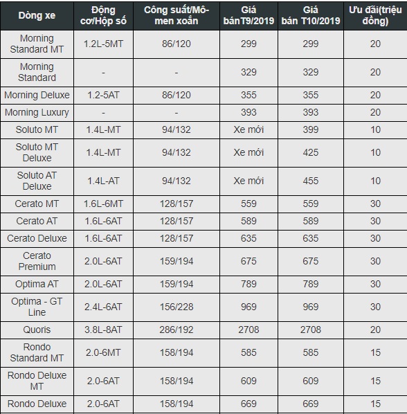 Bảng giá xe Kia mới nhất tháng 12/2019 tại thị trường Việt Nam. Ảnh: cungcau.vn |