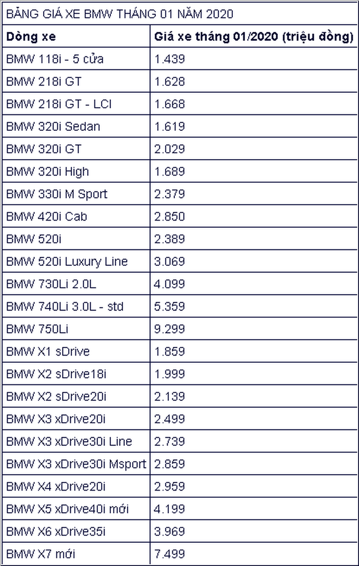 Giá bán của BMW 7-Series mới nhất được phân phối với 3 phiên bản là 730Li, 740Li và 750Li có giá bán lần lượt là 4,049 tỷ đồng, 5,359 tỷ đồng và 9,299 tỷ đồng.
