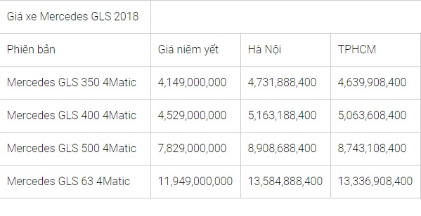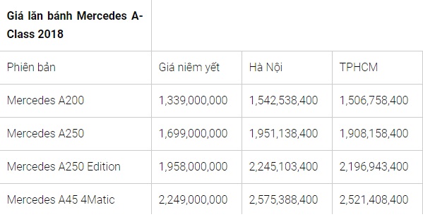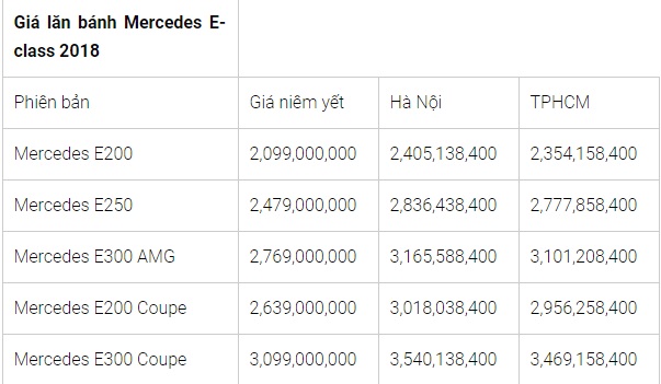 Bảng giá xe Mercedes-Benz tháng 7/2018. Ảnh: Trang công nghệ |
