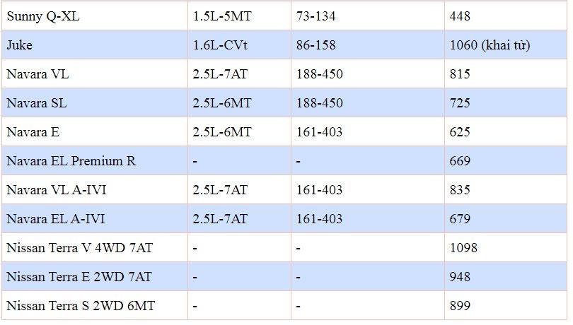 Bảng giá xe Nissan mới nhất tháng 2/2020. Ảnh: Thời đại |