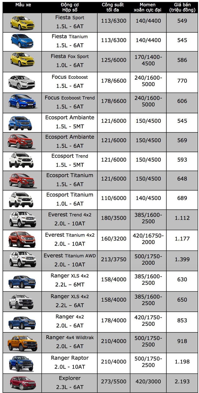 Ngoài ra, các mẫu xe khác của Ford vẫn được duy trì mức giá tương đối ổn định từ các tháng trước đó.