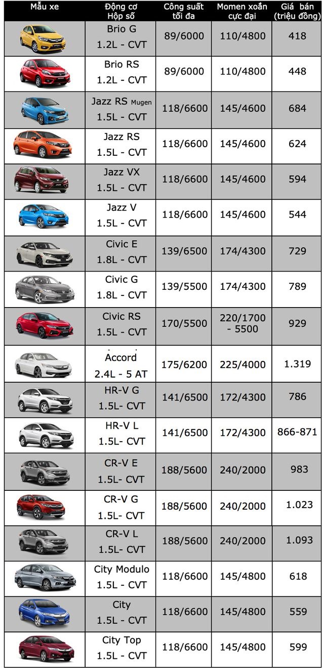 Bảng giá xe ô tô Honda mới nhất tháng 11/2019 tại thị trường Việt Nam. Cập nhật thông tin giá các mẫu xe ô tô Honda tháng 11/2019 nhanh và chính xác nhất.
