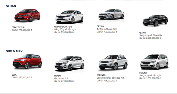 Bảng giá cụ thể các dòng xe KIA trong tháng 12 tại thị trường Việt Nam: