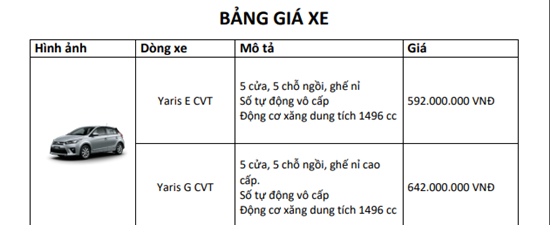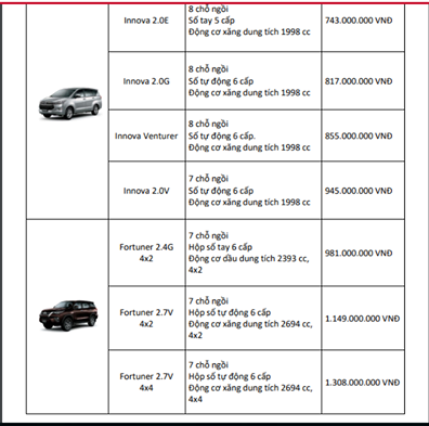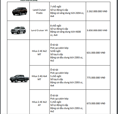 Bảng giá các mẫu xe Toyota mới nhất tháng 4/2018 tại thị trường Việt Nam. Cập nhật thông tin giá xe Toyota tháng 4/2018 nhanh và chính xác nhất.