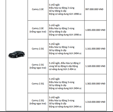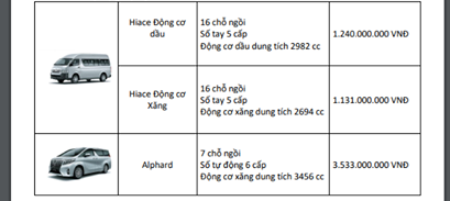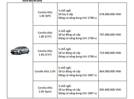 Bảng giá các mẫu ô tô Toyota mới nhất tháng 4/2018: