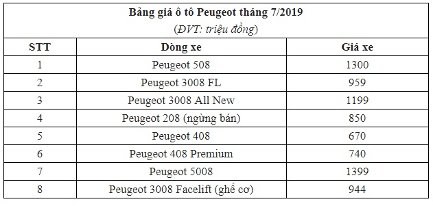 Bảng giá xe Peugeot mới nhất tháng 7/2019 tại thị trường Việt Nam. Ảnh: Thể thao 247 |