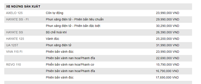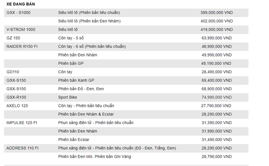 Bảng giá các dòng xe máy Suzuki tháng 4/2018. |