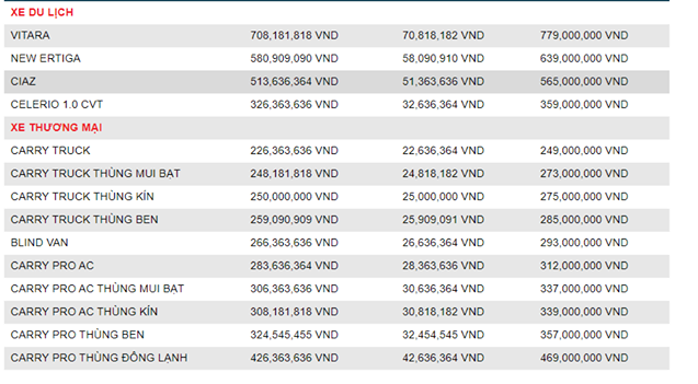 Bảng giá các dòng xe ô tô Suzuki tháng 4/2018. |