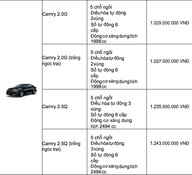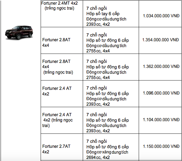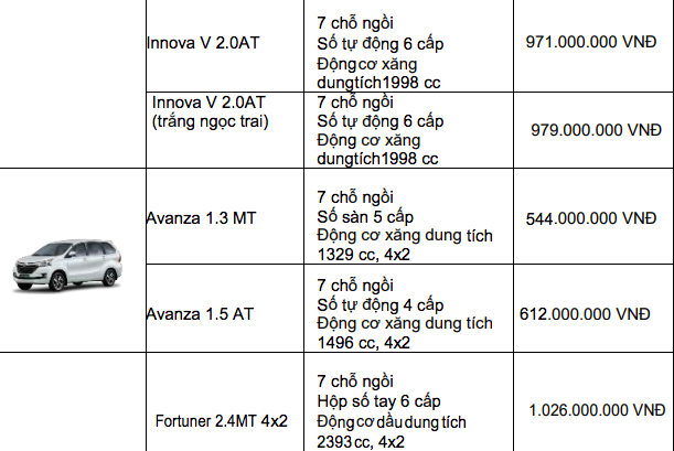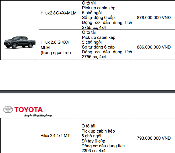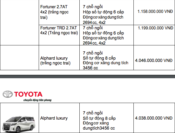Bảng giá xe Toyota mới nhất tháng 12/2019 tại thị trường Việt Nam. Ảnh: vietnamfinance |