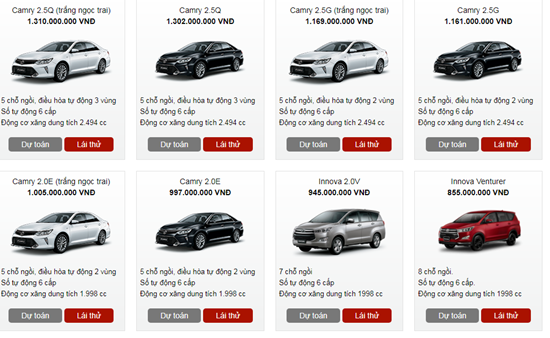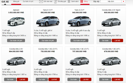 Bảng giá các mẫu xe Toyota mới nhất tháng 3/2018: