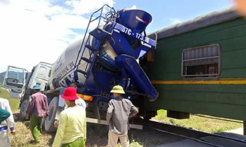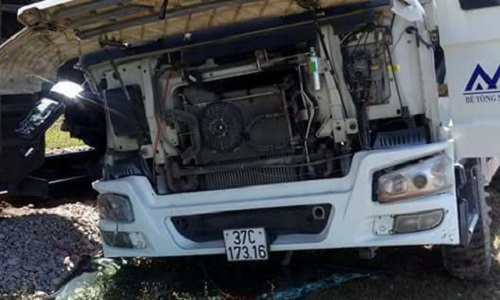Chiếc xe bồn trộn xi măng đi từ đường liên xã băng sang đường sắt thiếu quan sát. Đúng lúc này, tàu hỏa lao tới tông xe bồn bẹp dúm.
