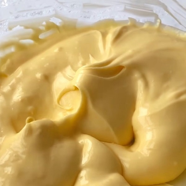 - Cho 200gr cream cheese vào hỗn hợp trên và đánh bông đến khi thu được hỗn hợp sền sệt, bông mịn.