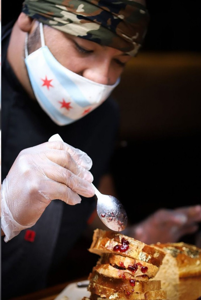 Chủ quán gọi tên chiếc bánh này là ngỗng vàng. "Bạn sẽ cảm nhận được sự quyến rũ của món ăn này trong miệng", vị chủ quán miêu tả hương vị của món bánh 350 USD (hơn 8 triệu đồng ).