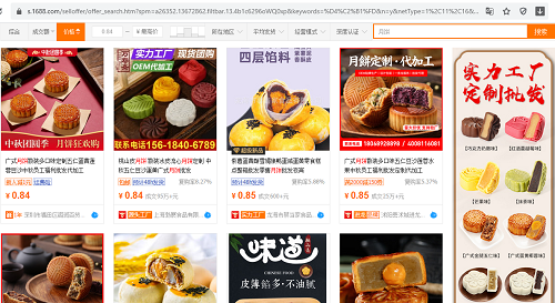 Những loại bánh trung thu được bày bán trên chợ điện tử lớn nhất Trung Quốc Alibaba, có giá chưa đến 1 NDT. Ảnh chụp màn hình |