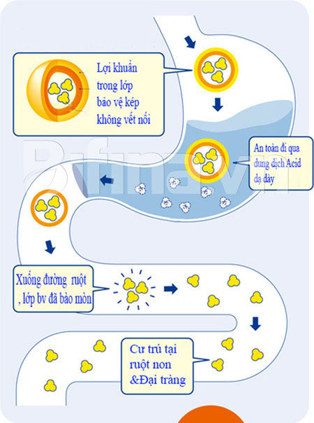 | Công nghệ độc đáo đưa lợi khuẩn Bifido vào đến tận ruột non và đại tràng |