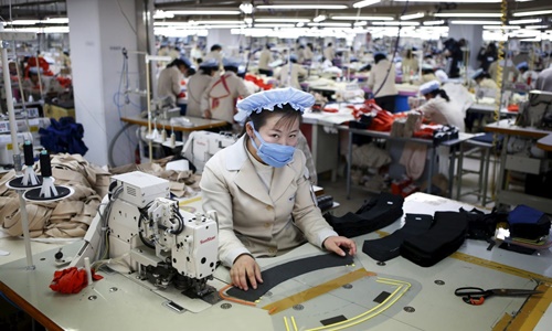 Một nữ công nhân làm việc trong nhà máy dệt may của Triều Tiên. Ảnh: Reuters. |