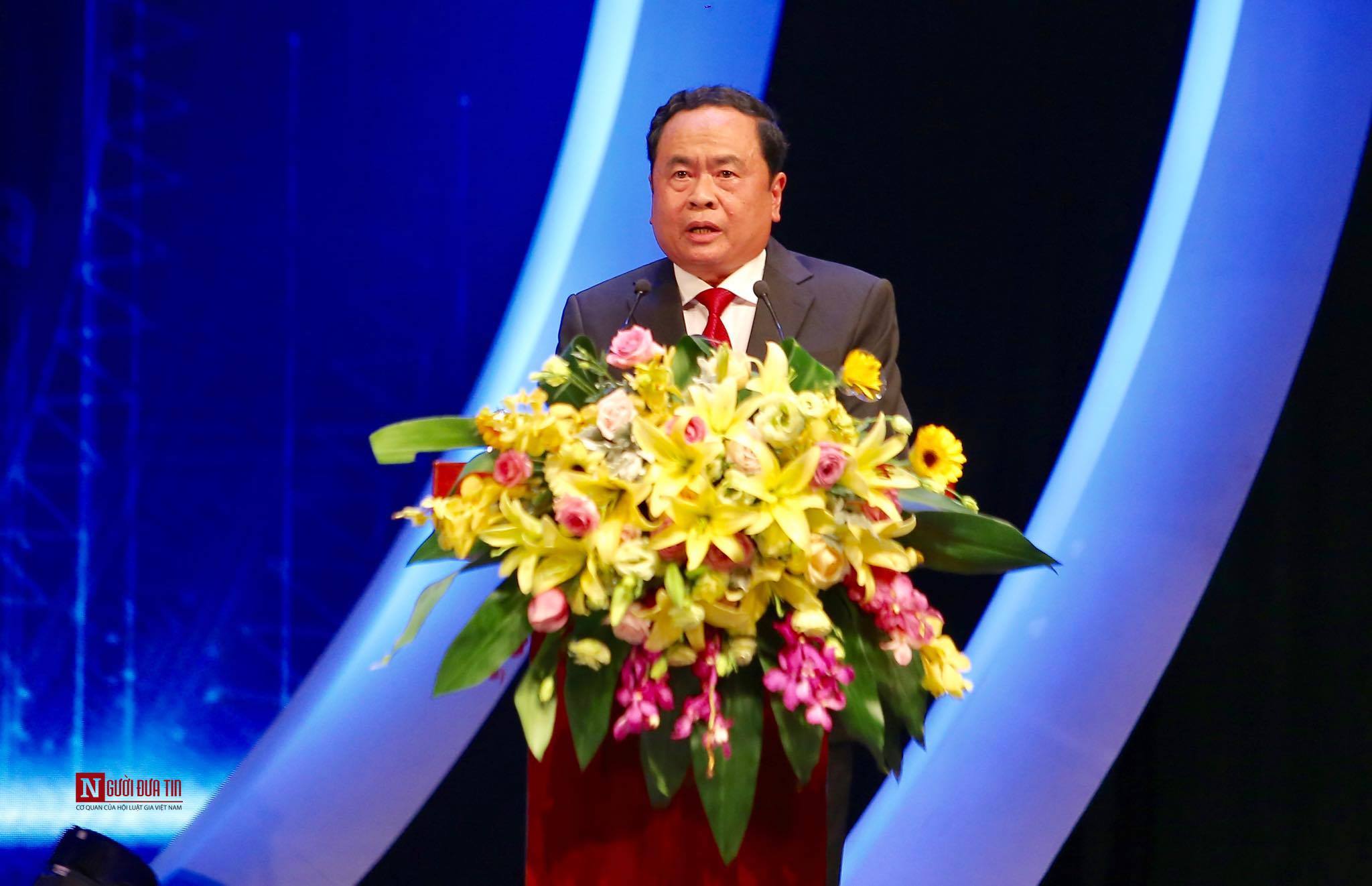 Chủ tịch Ủy ban Trung ương MTTQ Việt Nam Trần Thanh Mẫn điểm lại các tác phẩm báo chí đoạt giải. Ảnh Hữu Thắng |