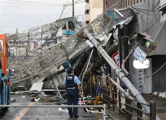Cảnh ngổn ngang sau khi bão Jebi đổ bộ vào Osaka, Nhật Bản ngày 4/9 - Ảnh: TTXVN. |