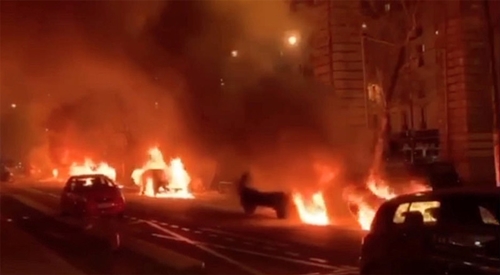Ô tô bị đốt cháy trên đường Paris - Ảnh: Reuters. |