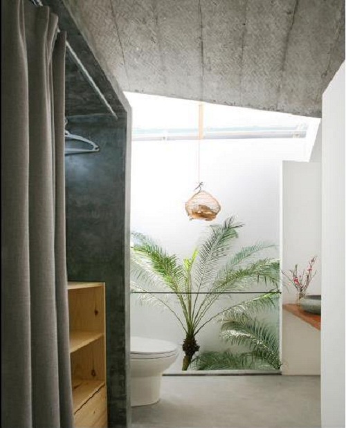 Góc vệ sinh trên tầng 2 tuyệt đẹp với cây xanh.