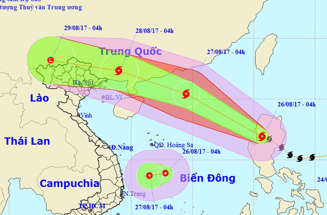 Theo tin mới nhất từ Trung tâm Dự báo Khí tượng Thuỷ văn Trung ương, hồi 4 giờ ngày 26/08, vị trí tâm bão ở vào khoảng 16,9 độ Vĩ Bắc; 120,7 độ Kinh Đông, trên khu vực miền Trung đảo Lu-dông (Phi-líp-pin). Sức gió mạnh nhất ở vùng gần tâm bão mạnh cấp 9 (75-90km/giờ), giật cấp 11.
